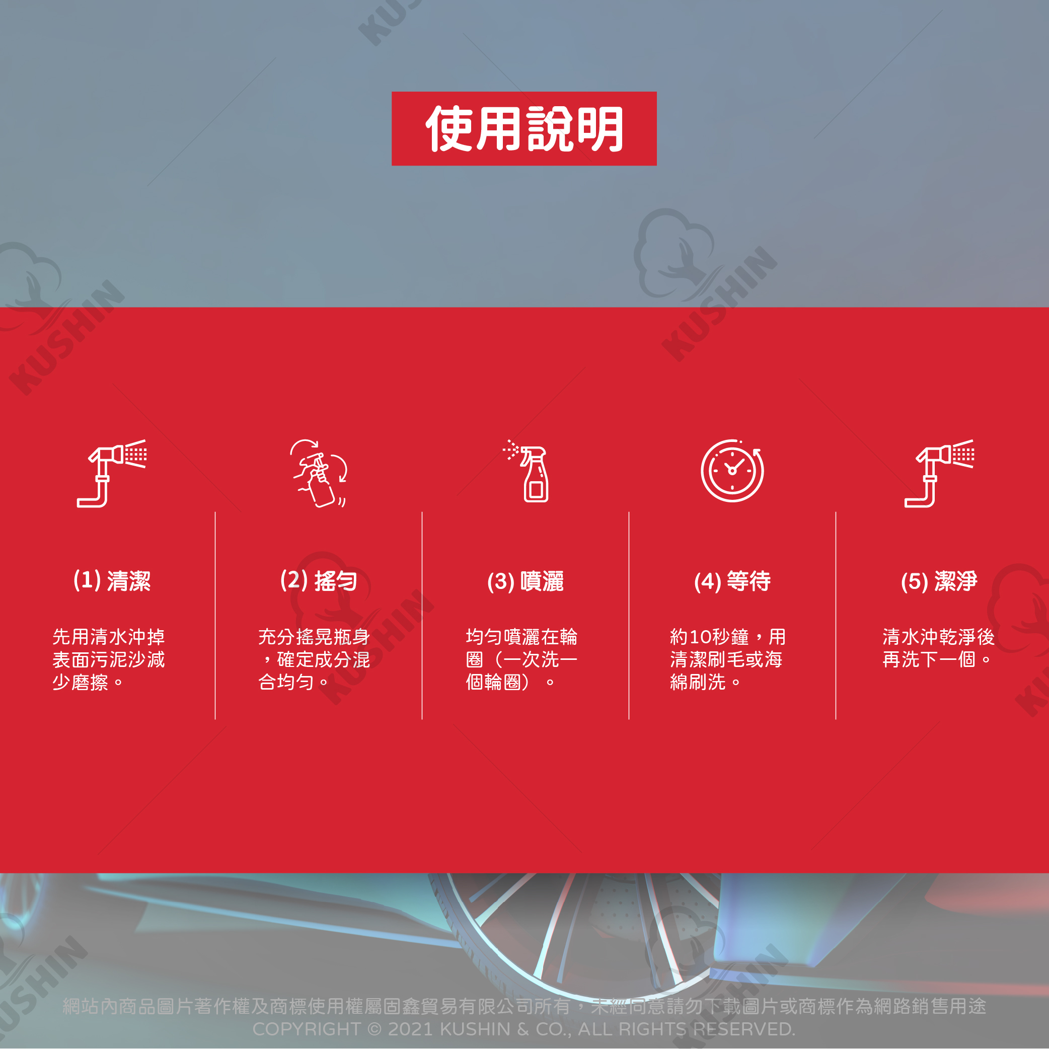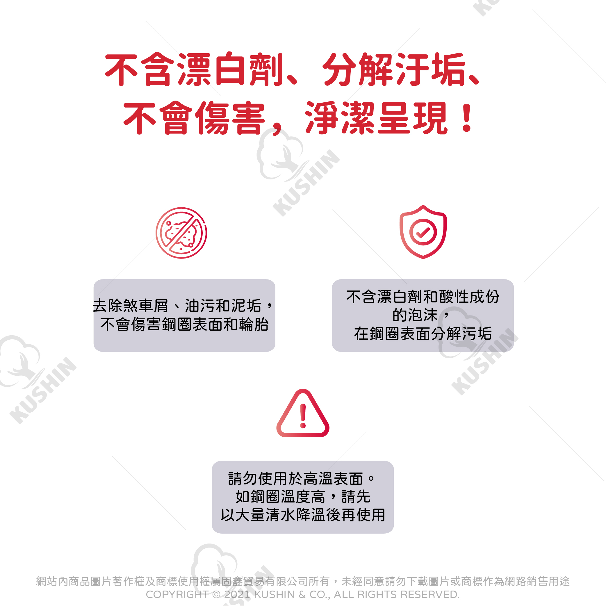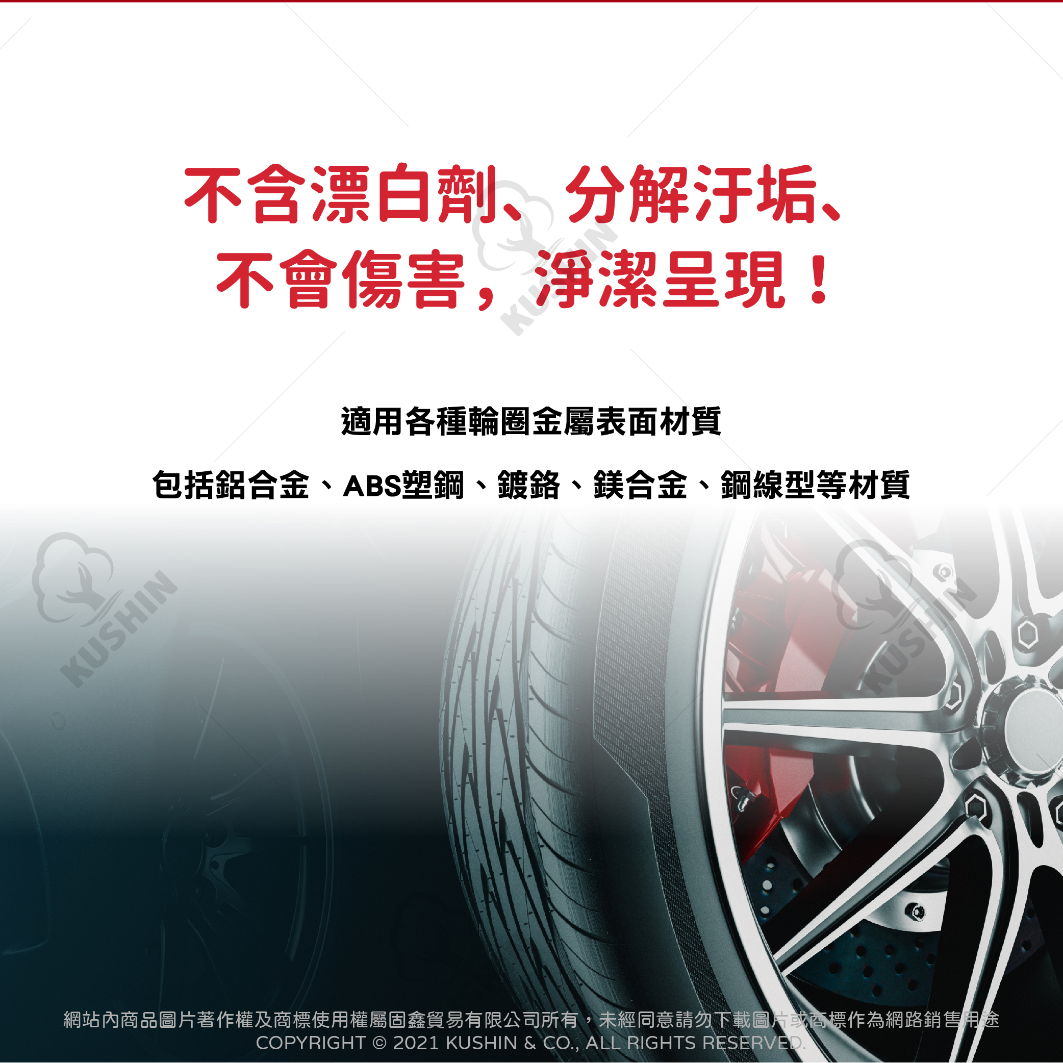 ★去除煞車屑、油污和泥垢,不會傷害鋼圈表面和輪胎