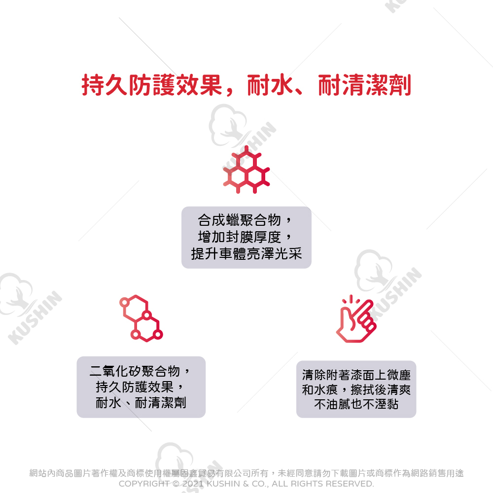 ★二氧化矽聚合物,持久防護效果,耐水、耐清潔劑