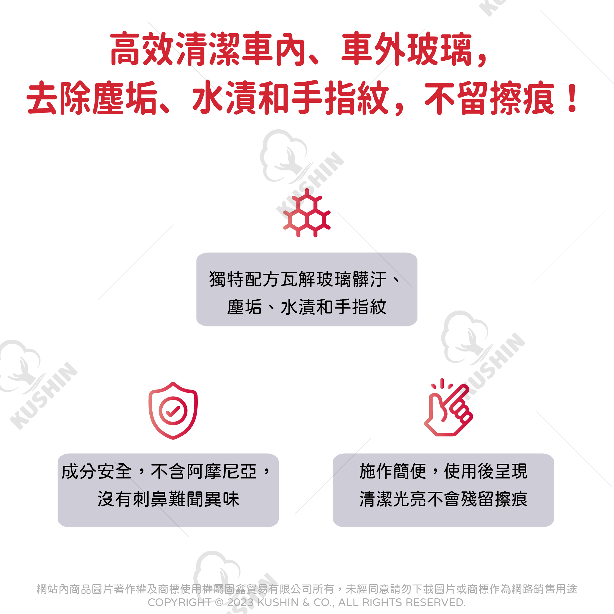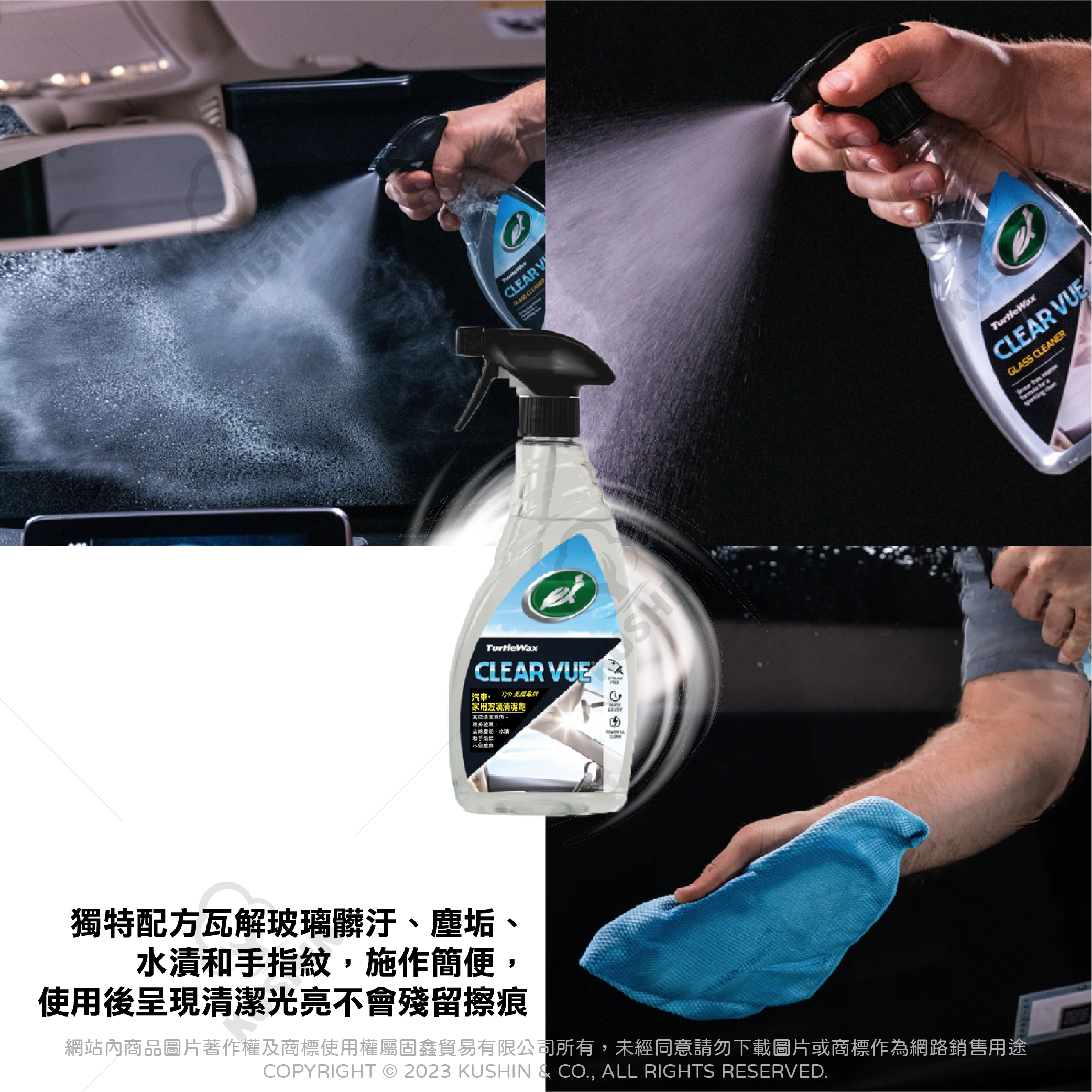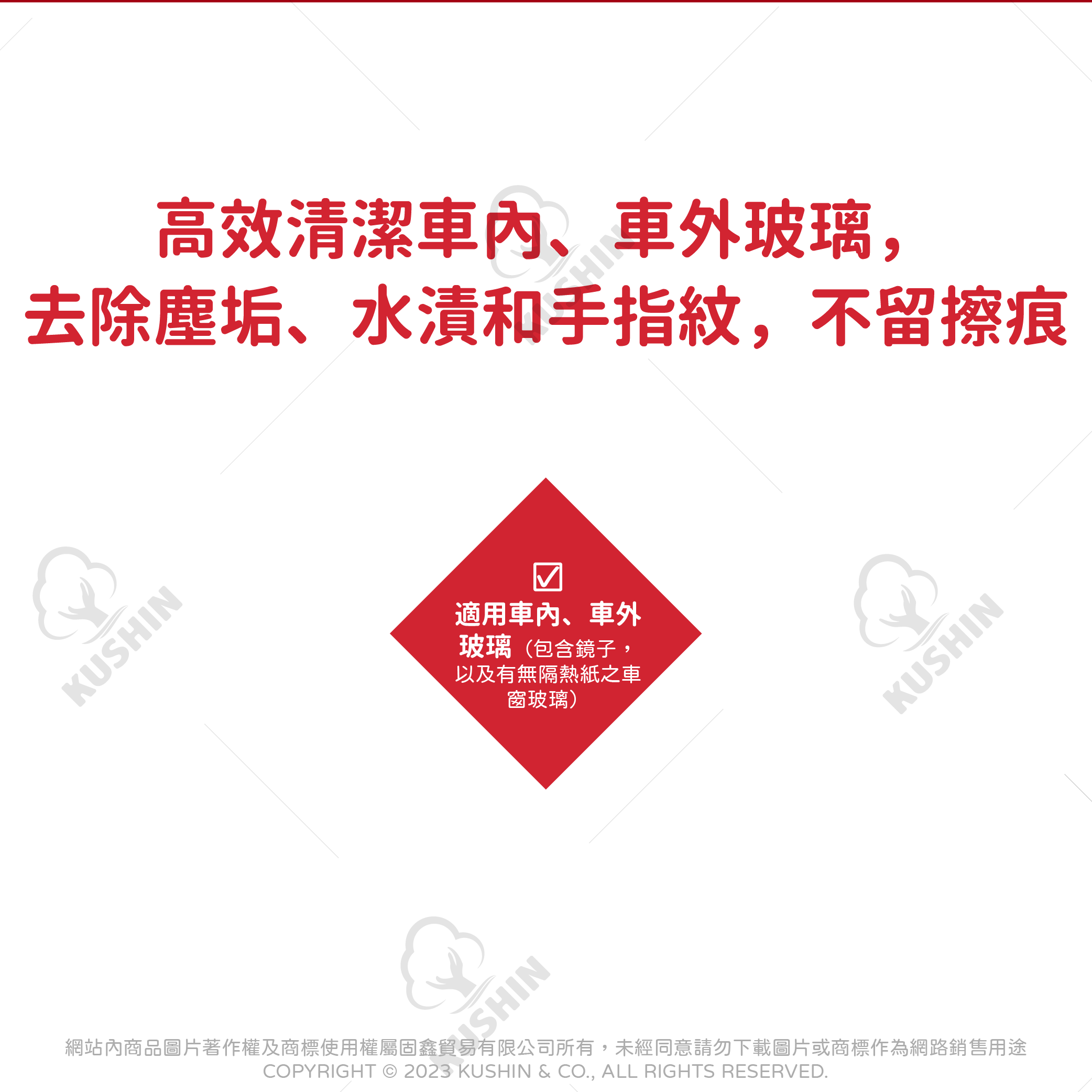 高效清潔車內、車外玻璃,去除塵垢、水漬和手指紋,不留擦痕!