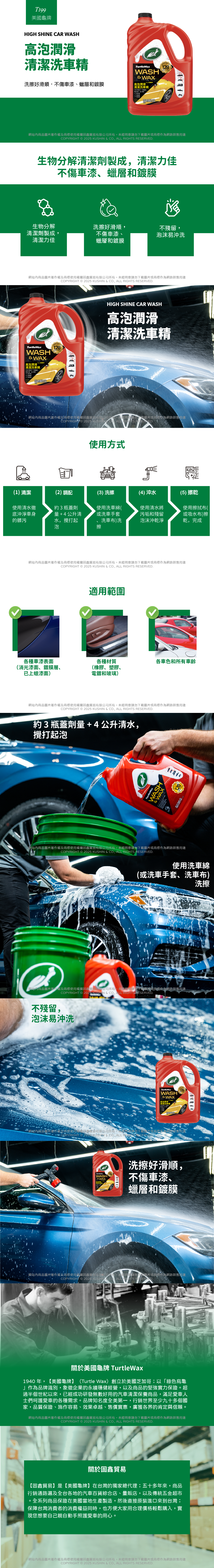生物分解清潔劑製成,清潔力佳不傷車漆、蠟層和鍍膜