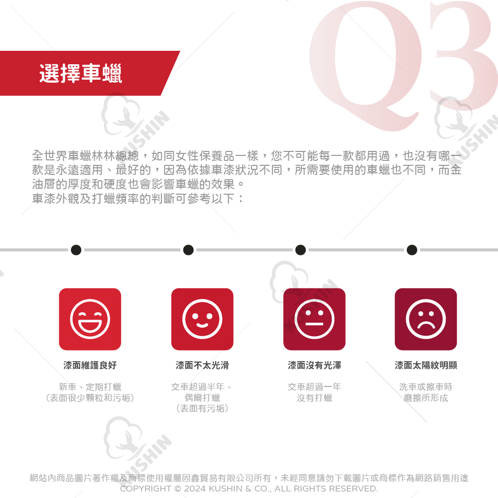 1. 適用特定漆面(未上蠟、未鍍膜)