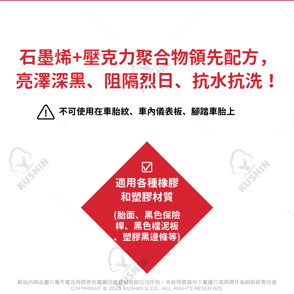 【適用範圍】各種橡膠和塑膠材質(包含胎面、黑色保險桿、黑色檔泥板、塑膠黑邊條等)