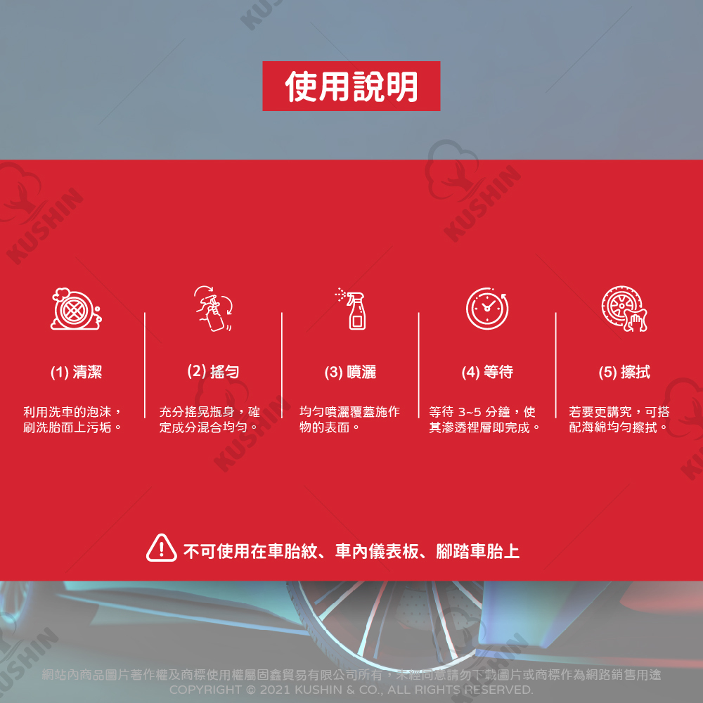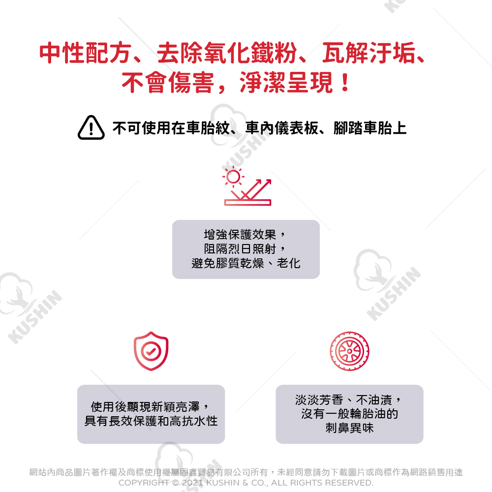 ★淡淡芳香、不油漬,沒有一般輪胎油的刺鼻異味