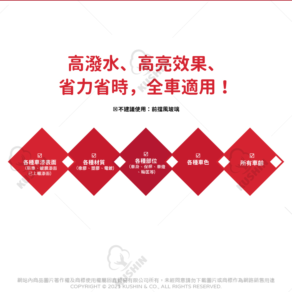 1.適用各種車漆表面(包含新車、已上蠟漆面、鍍膜漆面)