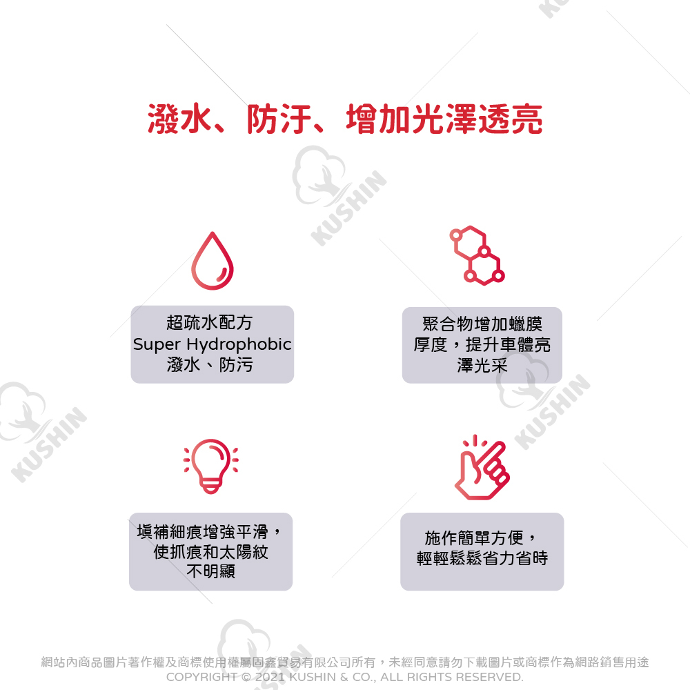 ★聚合物增加蠟膜厚度,提升車體亮澤光采