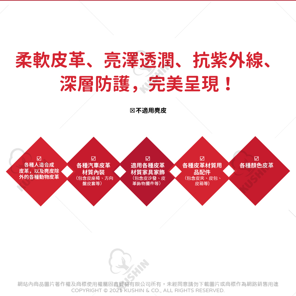 ★UV 防護效果,有效抵禦紫外線,預防皮革乾燥龜裂