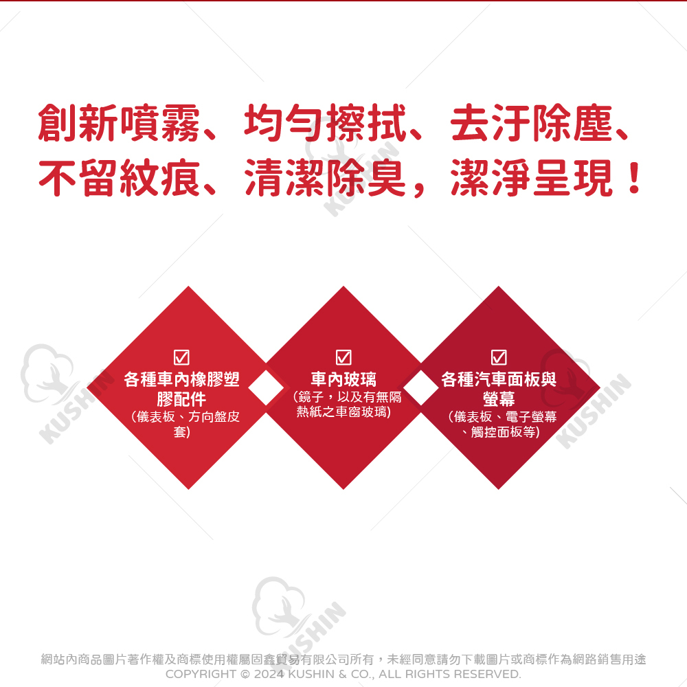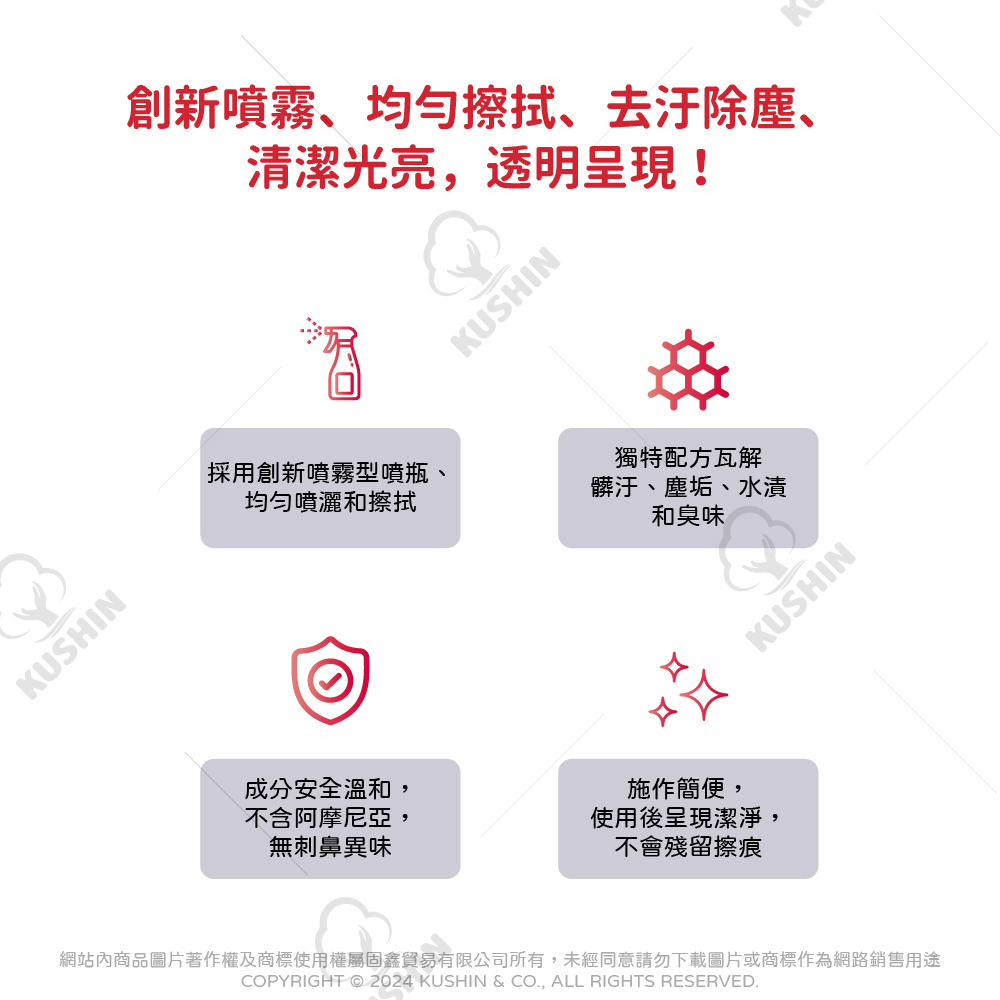 創新噴霧、均勻擦拭、去汙除塵、不留紋痕、清潔除臭,潔淨呈現!