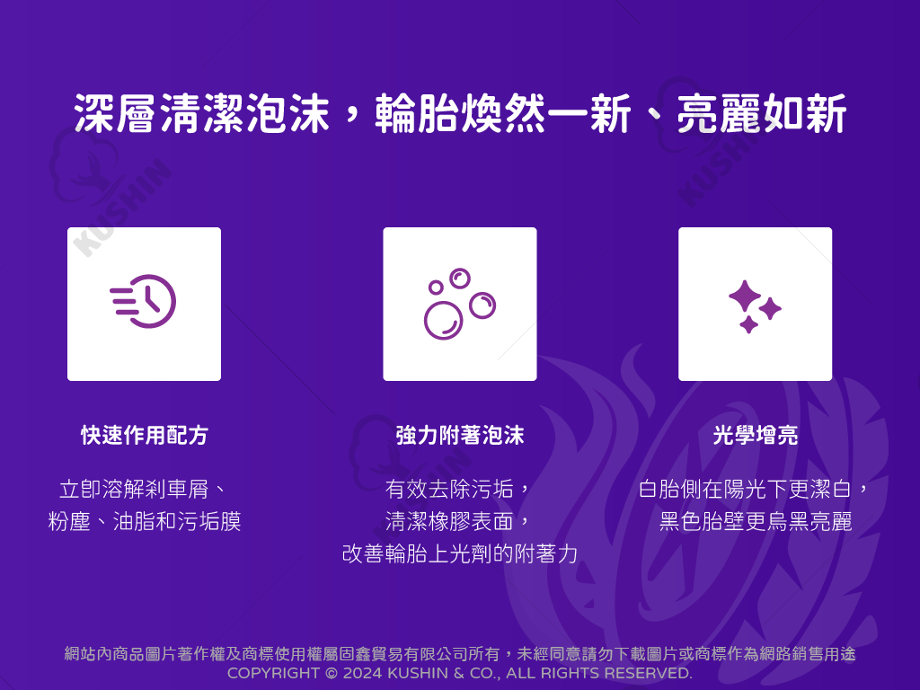 深層清潔泡沫,輪胎煥然一新、亮麗如新