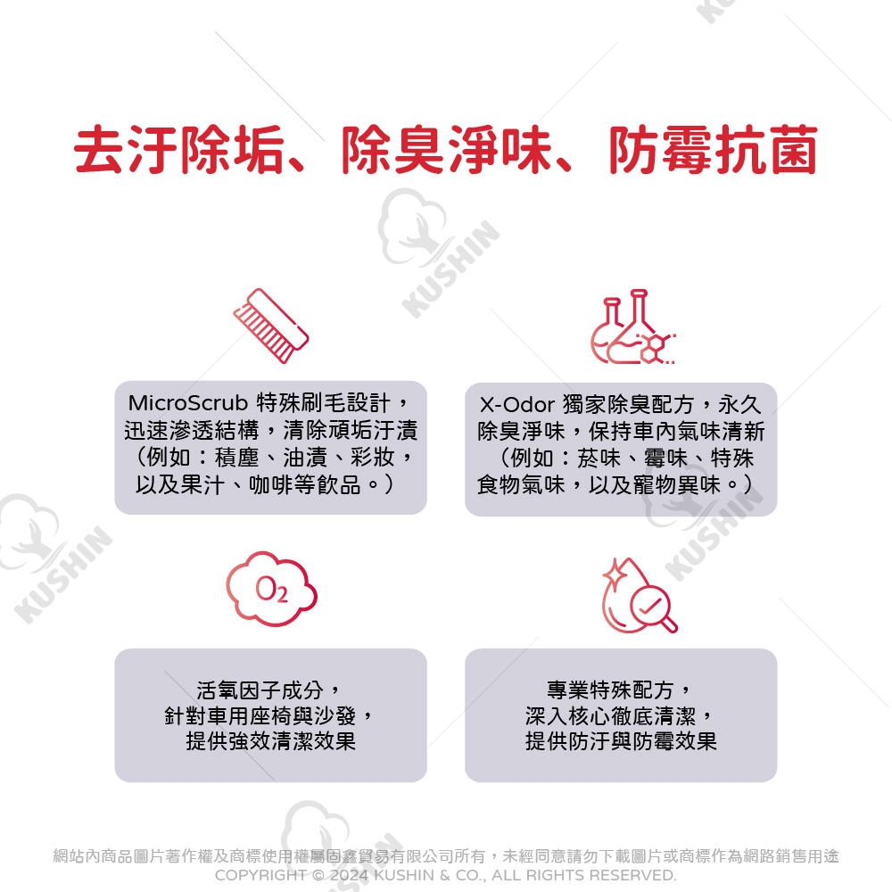★活氧因子成分,針對車用座椅與沙發,提供強效清潔效果