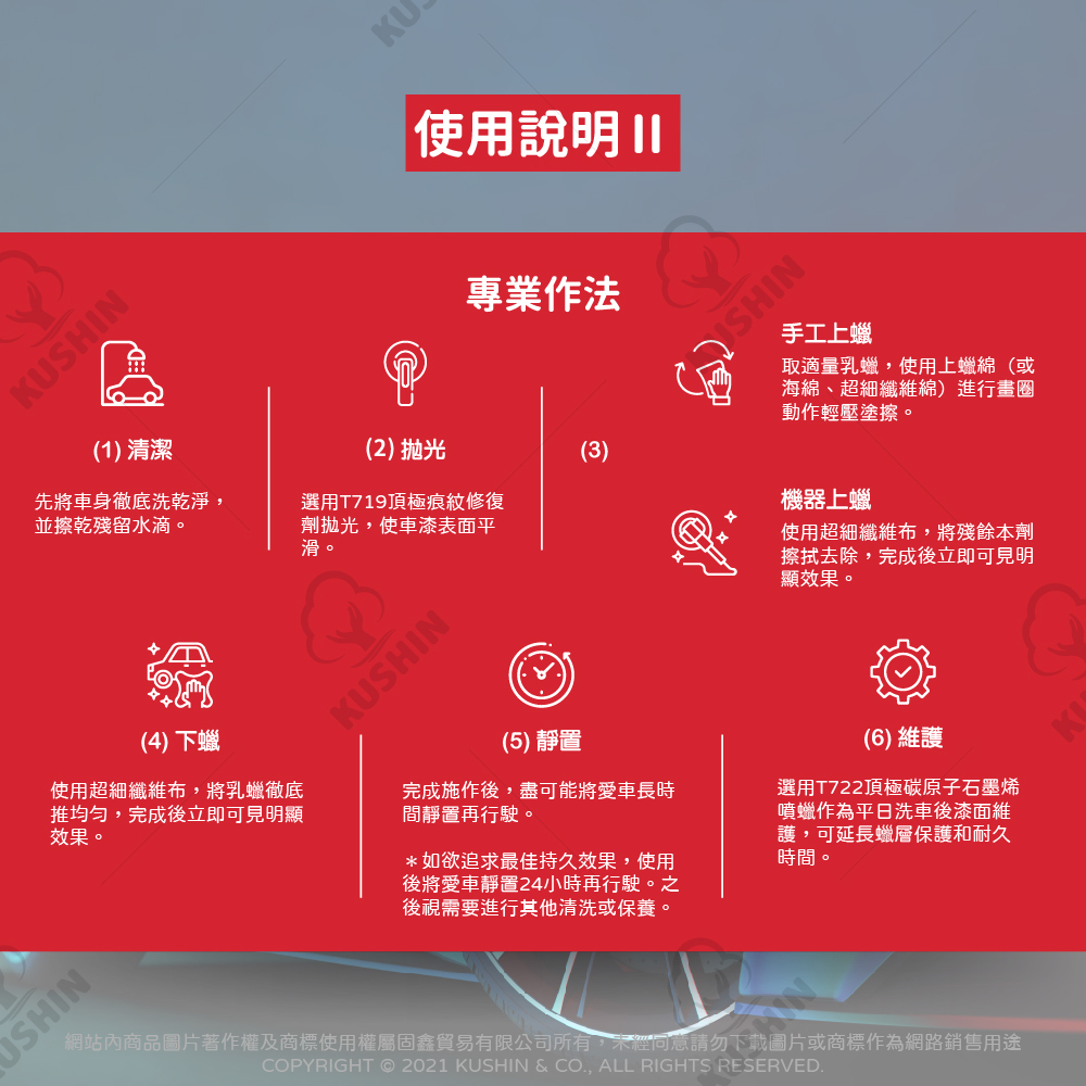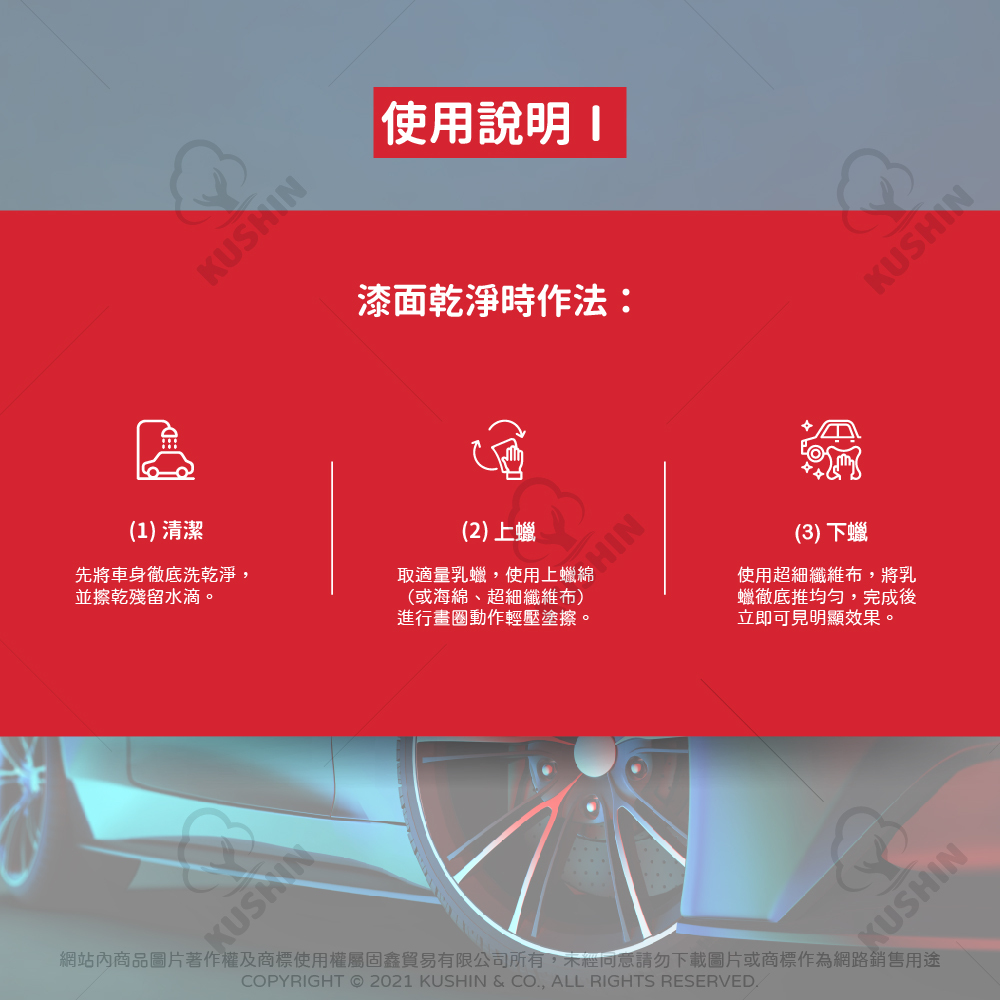 1. 適用漆面:未上蠟漆面、未上鍍膜漆面