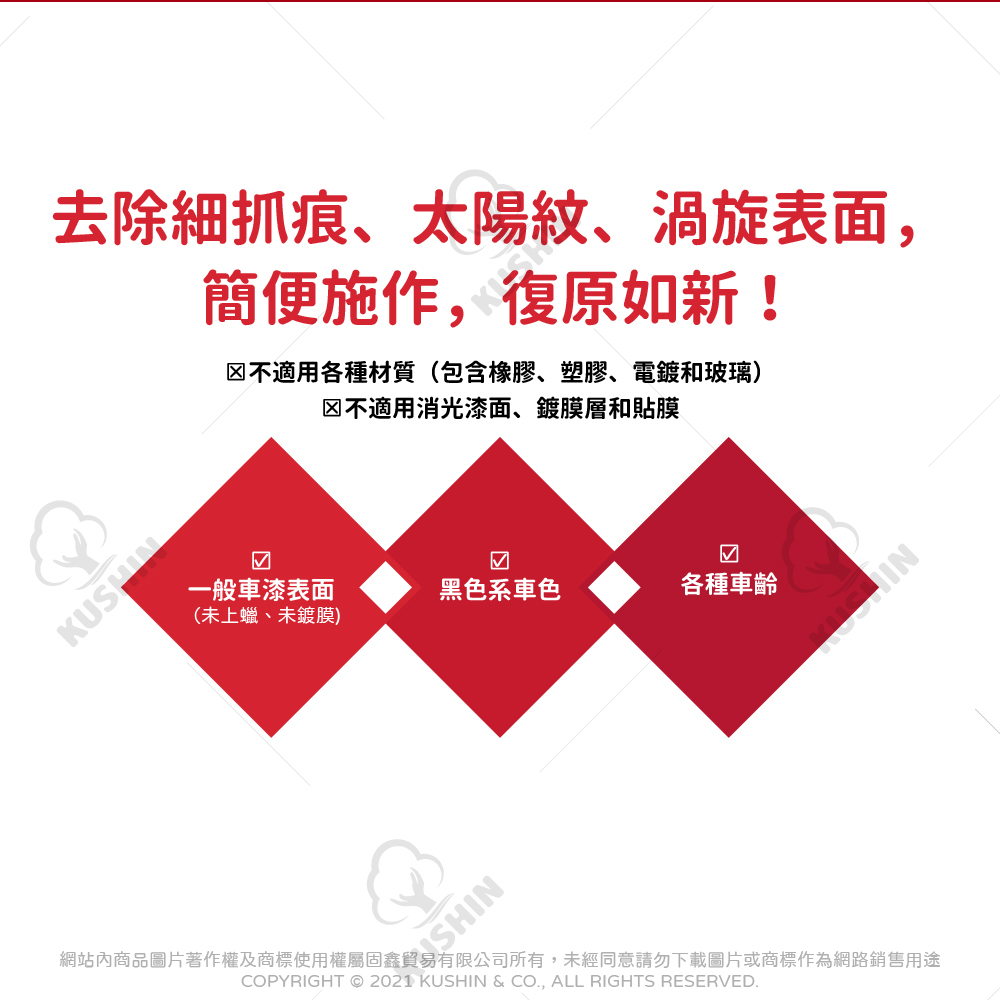 ★去除細抓痕、太陽紋、渦旋表面和輕微擦撞後留下的車漆