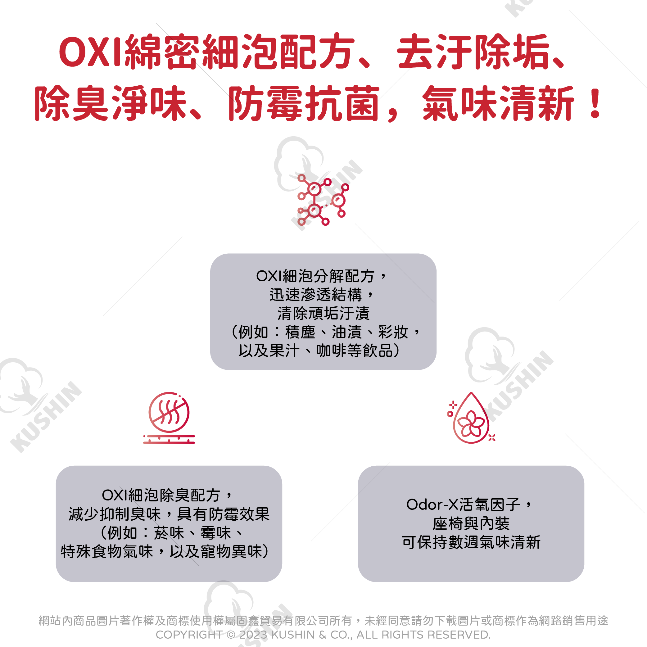 OXI綿密細泡配方、去汙除垢、除臭淨味、防霉抗菌,氣味清新!