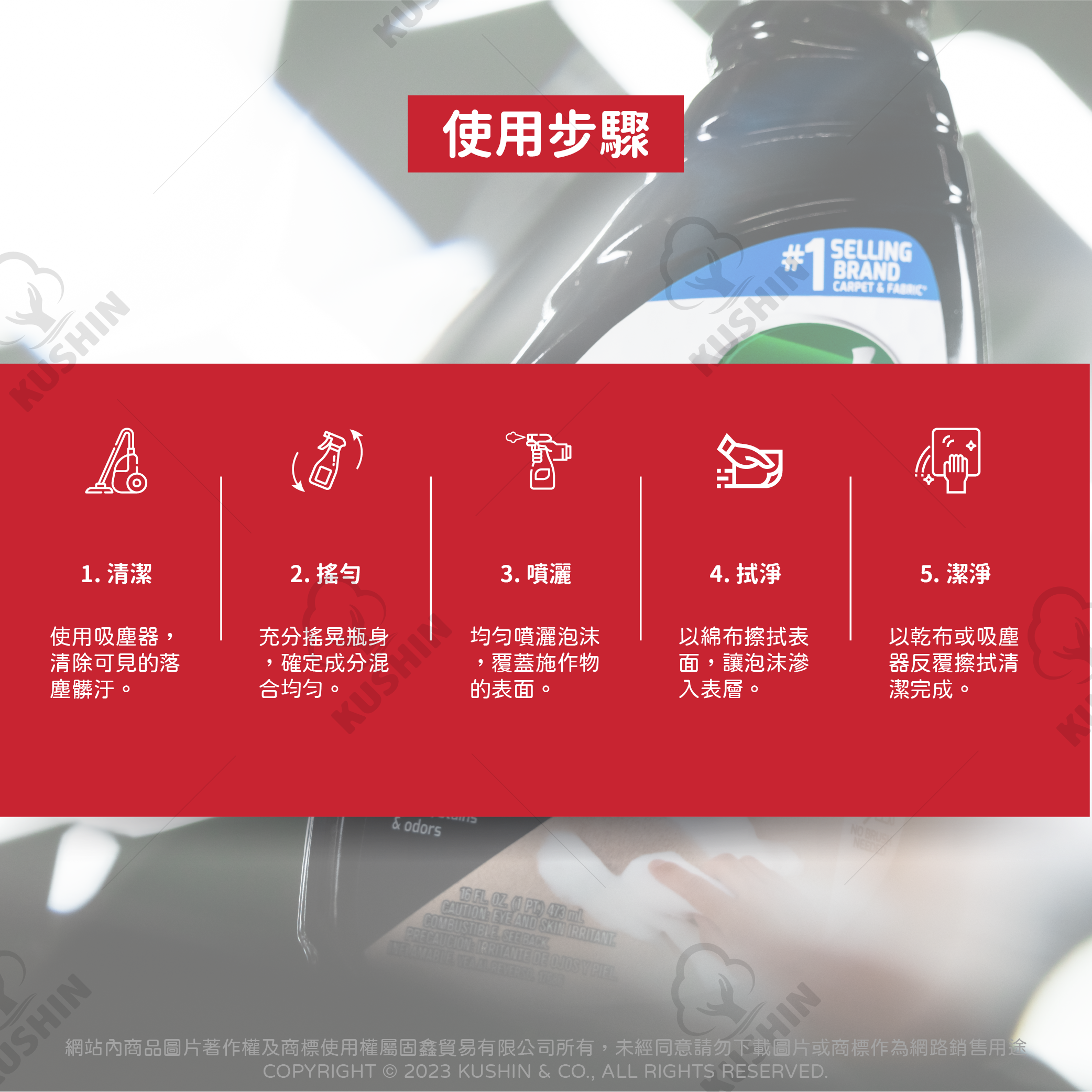 2. 適用地墊、座椅、沙發、車門邊飾、車頂等內裝