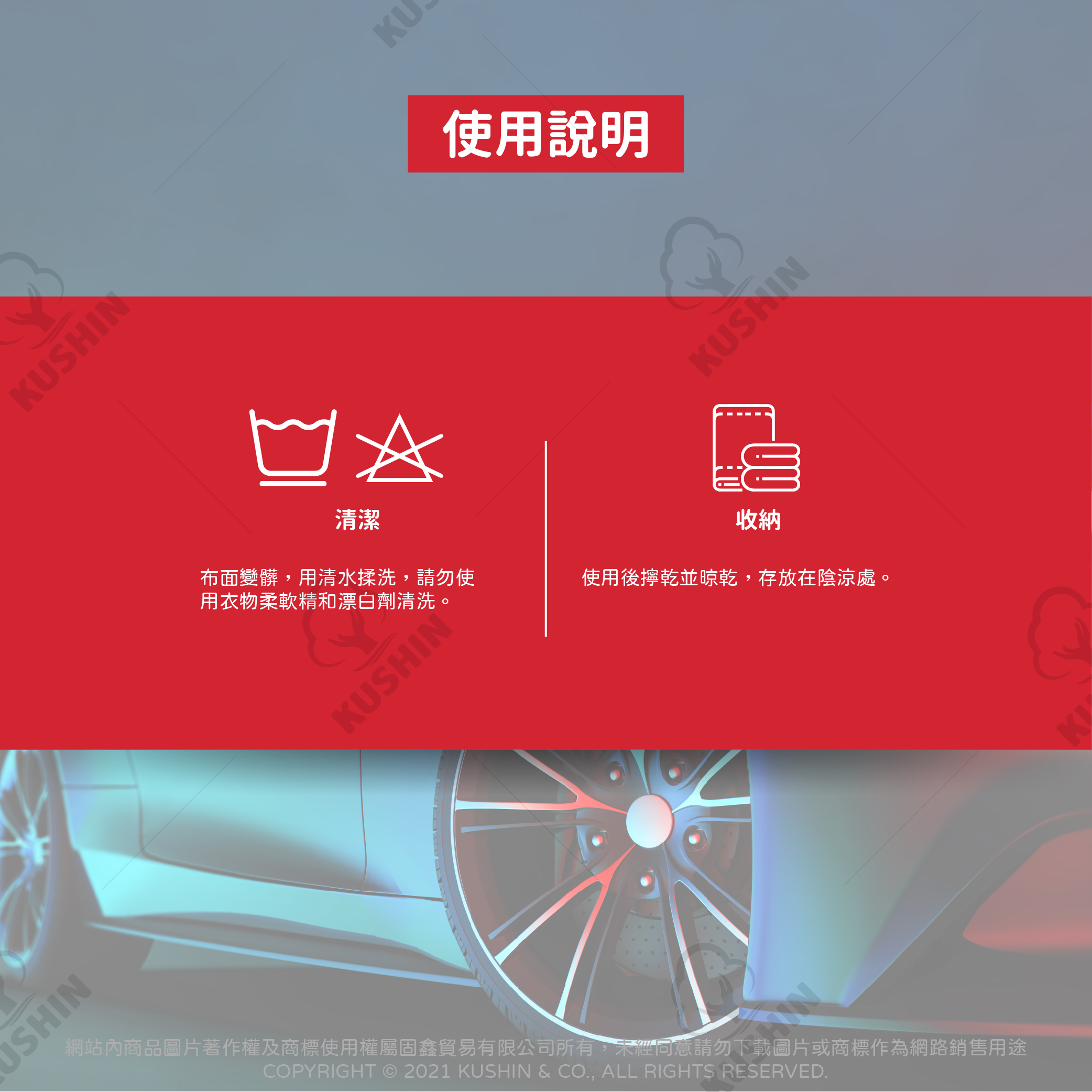 1. 布面變髒,用清水揉洗,請勿使用衣物柔軟精和漂白劑清洗。